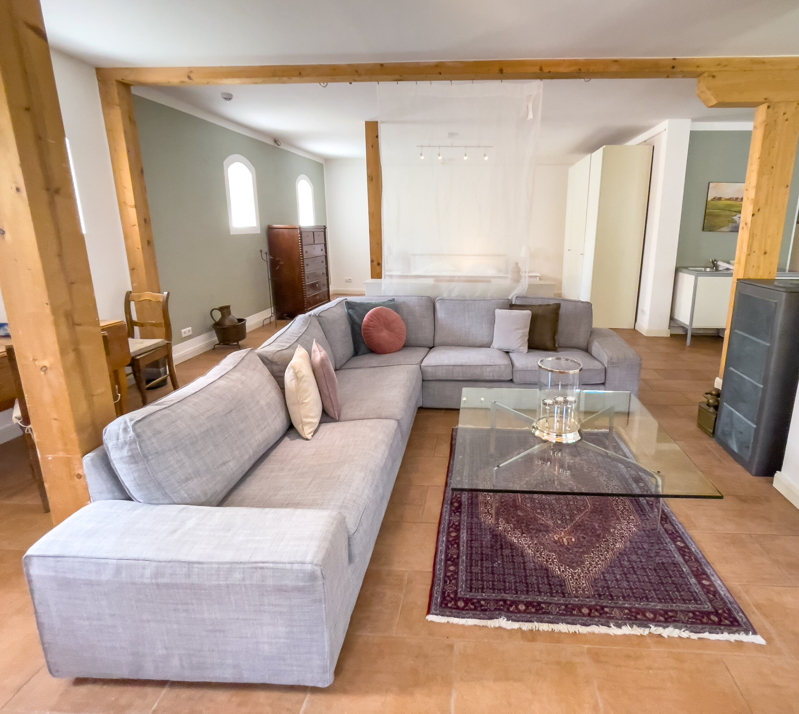 Sie bietet Platz für zwei bis drei Personen und ist mit teilweise antiken Möbeln und Gemälden eingerichtet, welche dem großzügigen Raum eine besondere Note verleihen.